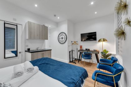 Discover your ideal retreat in the heart of Ealing, London, whether you're traveling solo or with your partner. Nestled on Broadway, our intimate studio awaits you with all the comforts you need for a memorable stay. Step into a cozy space featuring a luxurious king-sized bed, perfect for a restful night's sleep. The ensuite bathroom adds a touch of convenience and privacy to your experience, equipped with all the essentials.