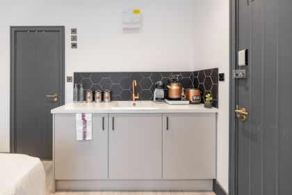 The heart of this studio is the sleeping area, featuring two single beds seamlessly joined together, providing ample space for restful nights. Whether you're traveling with a partner or flying solo, these beds offer flexibility to accommodate your sleeping preferences. Additionally, a single sofabed adds versatility, perfect for lounging during the day or accommodating an extra guest. Adjacent to the sleeping area is a well-appointed bathroom, offering privacy and convenience. Here, you can freshen up after a day of exploration or unwind with a rejuvenating shower before embarking on your next adventure. For those moments when you prefer the comfort of home-cooked meals, you'll find everything you need in the outside kitchen. Equipped with modern appliances and culinary essentials, this space invites you to unleash your inner chef and create delicious meals to savor at your leisure. Throughout the studio, neutral colors dominate the décor, creating a serene atmosphere conducive to relaxation and rejuvenation. Soft hues and minimalist furnishings combine to evoke a sense of tranquility, allowing you to escape the hustle and bustle of daily life and find solace in your surroundings.