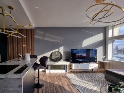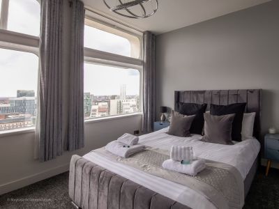 The apartment is sitting at the heart of Manchester just a stone's throw away from the massive Arndale shopping centre and the prestigious Selfridges and Harvey Nichols. Numerous artisan cafes, pubs and eateries are just minutes away